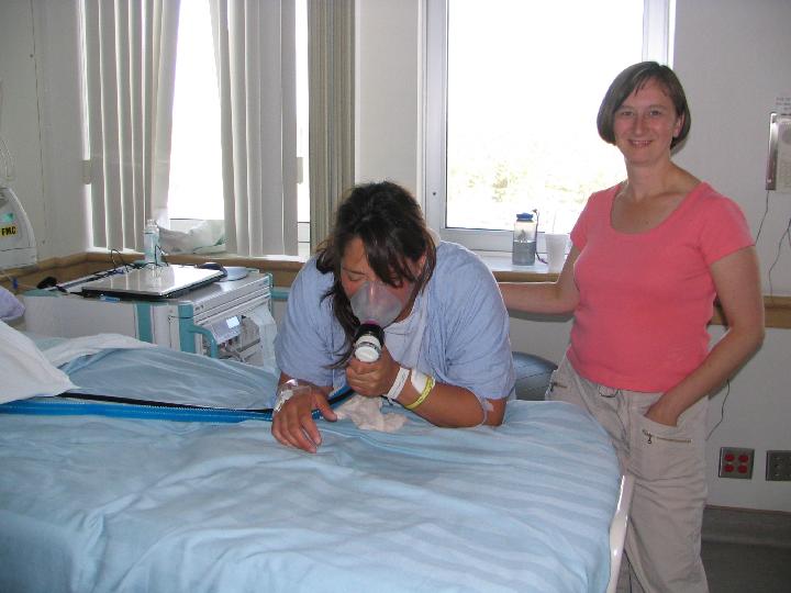 Using the laughing gas to help the pain. 05/06/06 6:21 PM